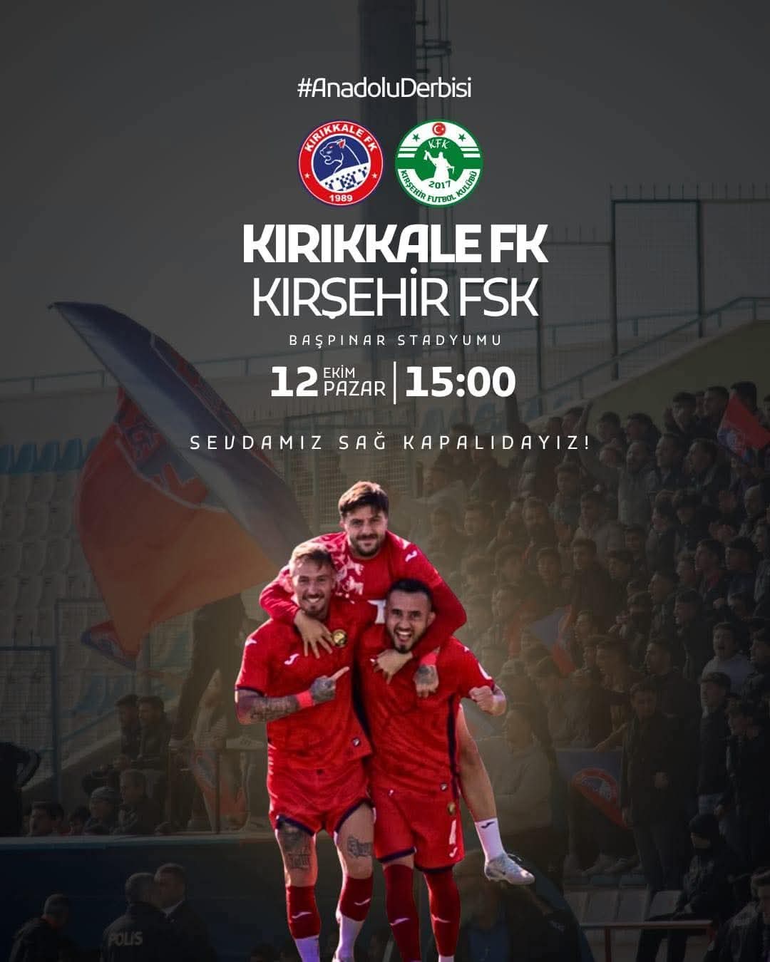 Taraftar grupları, “Sevdamız Sağ Kapalıdayız!” sloganıyla birleşerek, kırmızı-lacivert renklere gönül veren herkesi tribünlerde buluşmaya çağırdı. Maç öncesi sosyal medya üzerinden yapılan paylaşımlarda, takımına sahip çıkma ve Kırıkkale ruhunu yeniden ayağa kaldırma vurgusu öne çıktı.