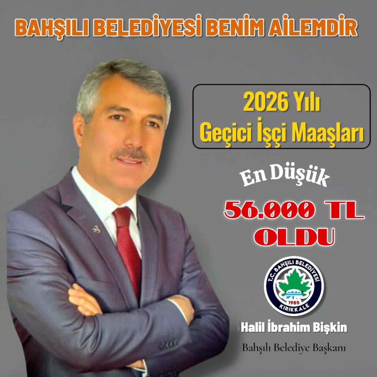 Kırıkkale’nin Bahşılı ilçesinde, Bahşılı Belediye Başkanı Halil İbrahim Bişkin tarafından belediye personeline yönelik maaş düzenlemesi açıklandı. Belediye bünyesinde uygulanan mali disiplin çalışmaları ve alınan kararlar doğrultusunda, 2026 yılı için personel maaşlarında önemli artışa gidildi.
