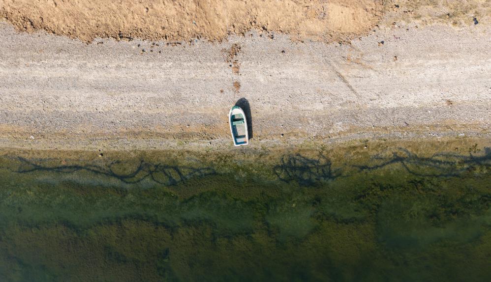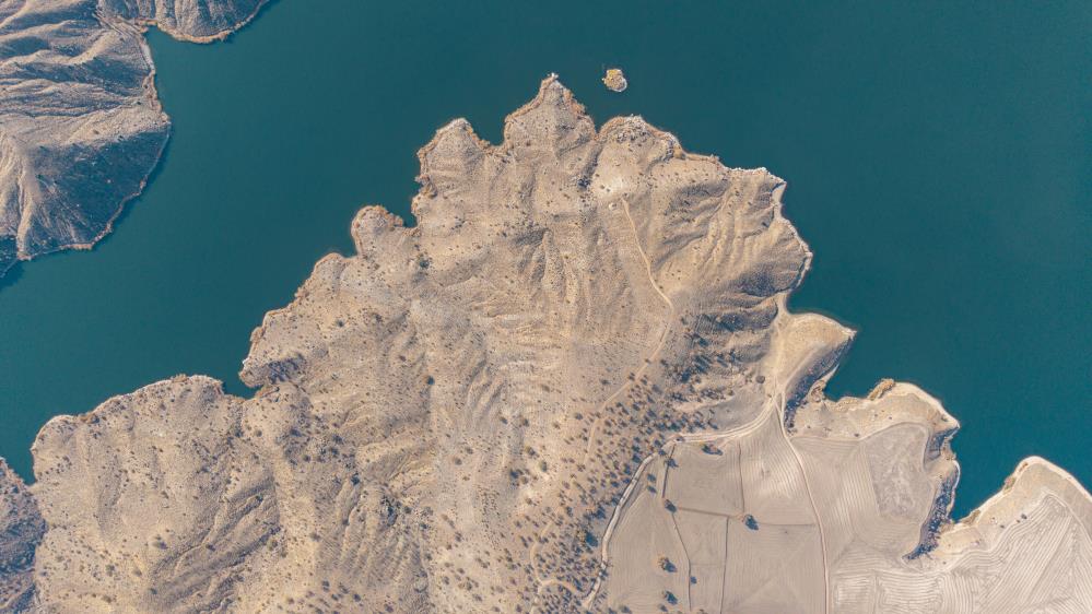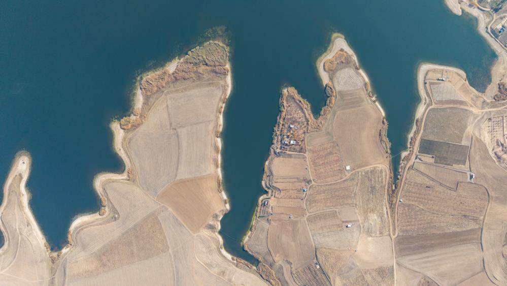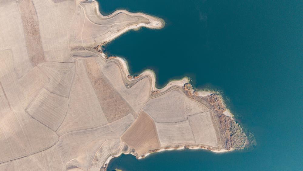 Kırıkkale'de, Kızılırmak'ın beslediği Kapulukaya Barajı'nda kıvrımlı kıyı hatları ve geniş su dokusunun oluşturduğu doğal manzara havadan görüntülendi.