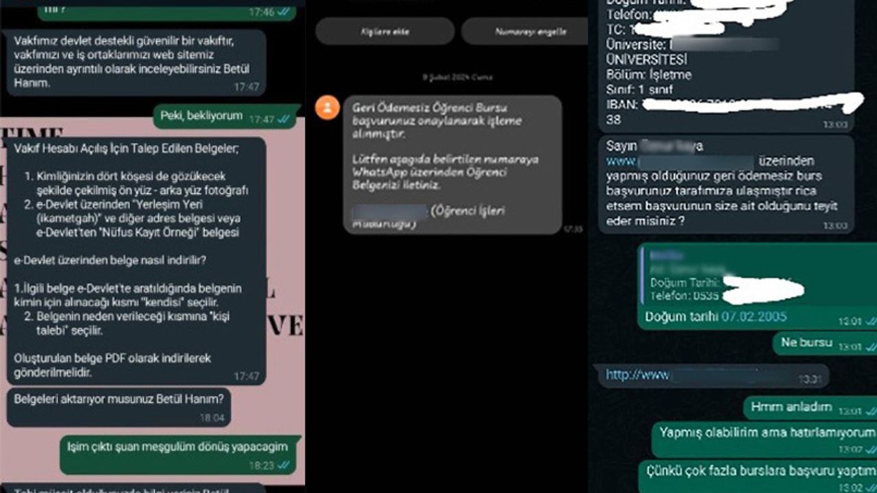 İnternet siteleri üzerinden dolandırıcılık faaliyetleri her geçen gün artıyor. Öğrencileri kandırmak isteyen dolandırıcılar ise burs yardımı verilecek gibi öğrencilere gönderdikleri mesajların içerisindeki 'Geri ödemesiz burs başvurunuz onaylanmıştır. Linke tıklayın, bilgilerinizi girerek burs başvurunuzu tamamlayın' şeklinde yazı göndererek iletişime geçtikleri kişileri ağlarına düşürmeye çalışıyor. Dolandırıcılar, bu bilgiler sayesinde öğrenciler adına dijital cüzdan telefonda bulunan bazı uygulamalarına erişim sağlayarak dolandırıyor.