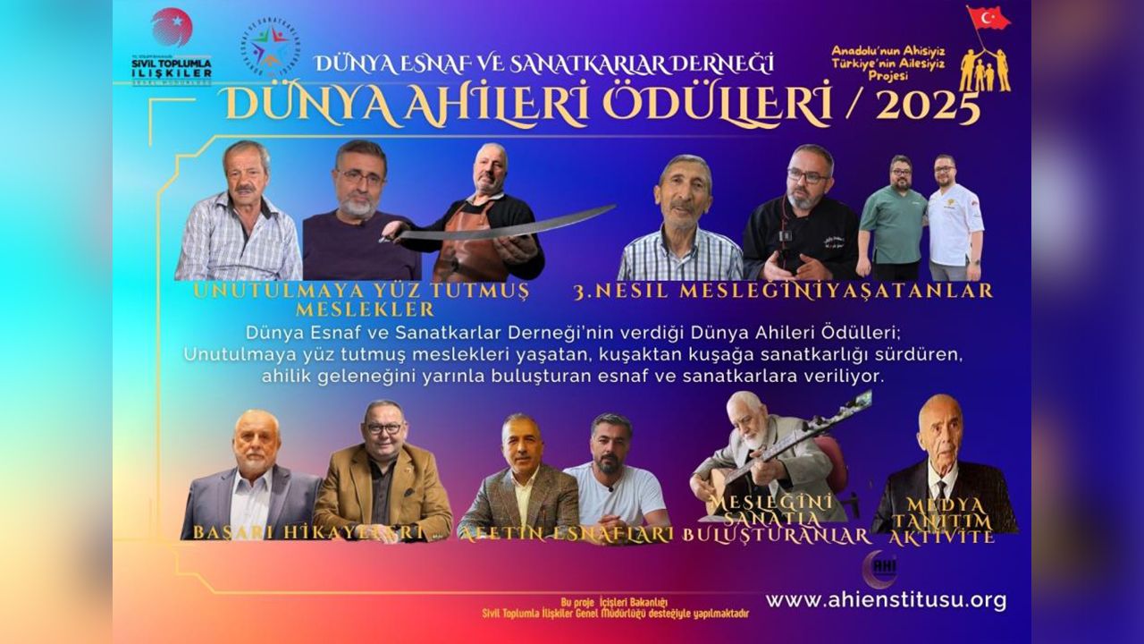 Dünya Esnaf ve Sanatkarlar Derneği-Ahi Enstitüsü tarafından geleneksel hale getirilen Dünya Ahileri Ödülleri sahiplerini buldu. 2025 yılında 6 farklı kategoride toplam 12 esnaf ve sanatkara ‘Dünya Ahisi Ödülü’ verildi.