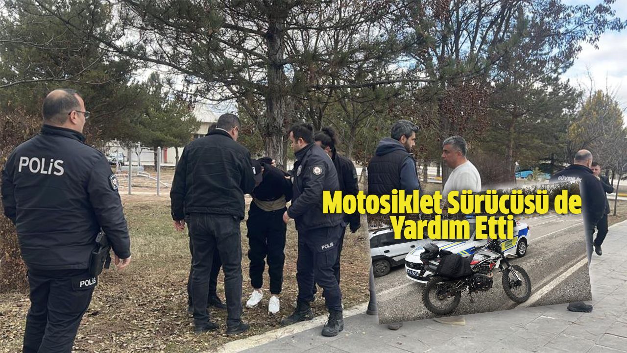 Sivas'ta asker kaçağı olduğu iddia edilen şahıs, polis ekiplerini görünce kaçmaya başladı. Motosiklet sürücüsünün de polise destek verdiği kovalamaca sonucu ekipler şahsı yakaladı.
