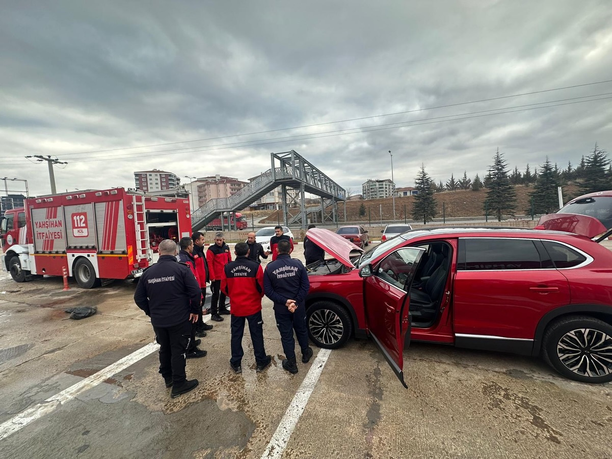 Program kapsamında, elektrikli araçlarda meydana gelebilecek olası yangınlara nasıl müdahale edilmesi gerektiği uygulamalı olarak ele alındı. Ekipler, batarya kaynaklı yangın riskleri, özel müdahale protokolleri ve güvenlik adımları üzerinde durarak saha uygulamaları gerçekleştirdi.