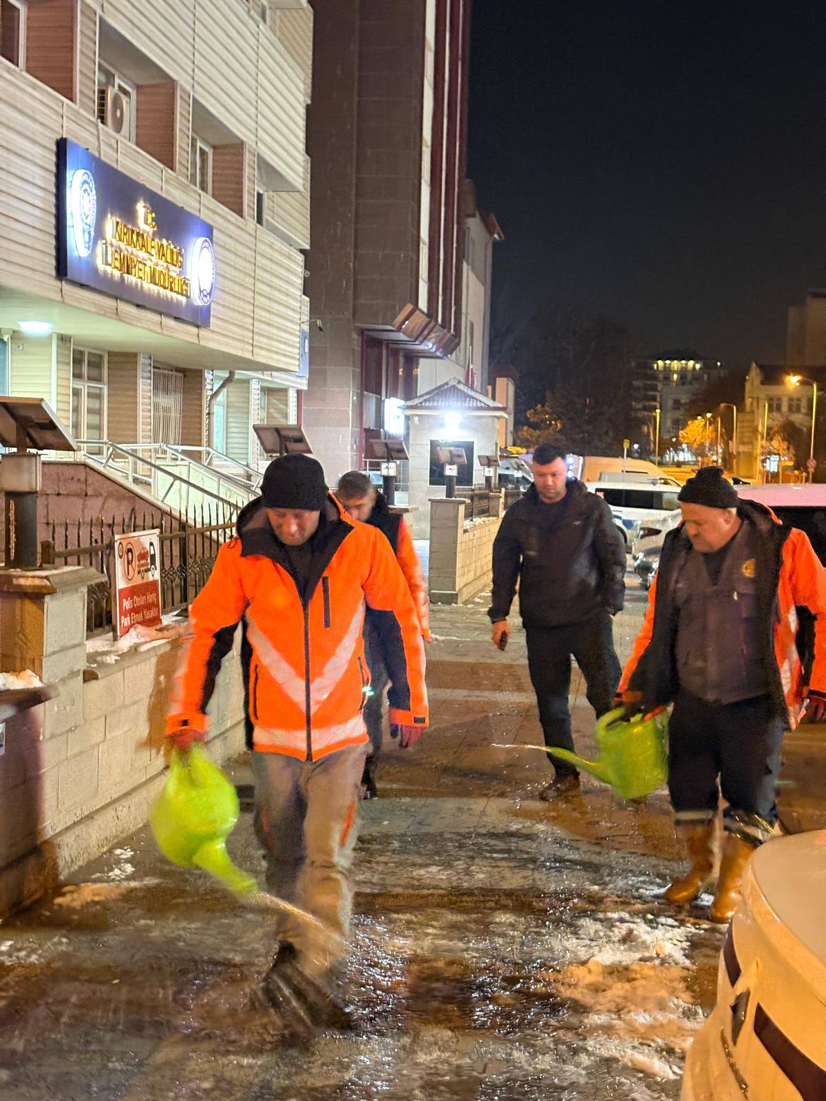 Kırıkkale’de gece saatlerinde hava sıcaklıklarının eksi derecelere düşmesiyle birlikte buzlanma riskine karşı önlemler artırıldı. Kırıkkale Belediyesi ekipleri, olası kazaların ve olumsuzlukların önüne geçmek amacıyla gece boyunca sahada görev yaptı.