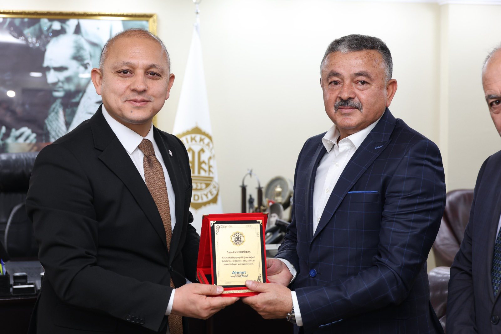 Kırıkkale Belediyesi’nde uzun yıllar görev yapan değerli personeller Cafer Demirbaş ve Yadigar Sever, emeklilikleri dolayısıyla düzenlenen törenle plaketle onurlandırıldı. Kırıkkale Belediye Başkanı Ahmet Önal, her iki çalışanı da yıllar boyunca gösterdikleri özveri, disiplin ve hizmetlerinden dolayı tebrik ederek plaketlerini takdim etti.