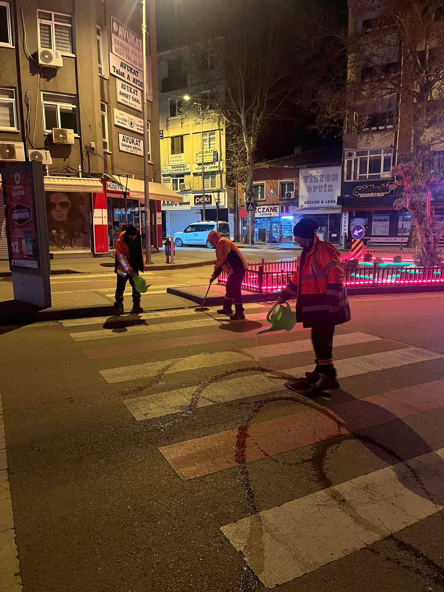 Kırıkkale Belediyesi ekipleri, şehir genelinde vatandaşların güvenliğini sağlamak amacıyla üst geçitler, duraklar ve kaldırımlarda solüsyon uygulaması gerçekleştirdi.