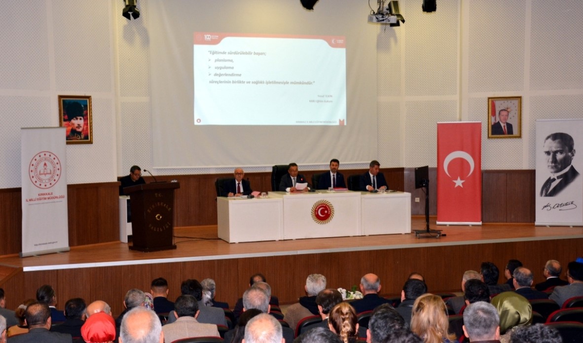 Toplantıda okul ve kurum yöneticileriyle bir araya gelen Kırıkkale İl Millî Eğitim Müdürü Rahmi Güney, eğitimde sürdürülebilir başarının planlama, uygulama ve değerlendirme süreçlerinin birlikte ve sağlıklı yürütülmesiyle mümkün olduğunu vurguladı.