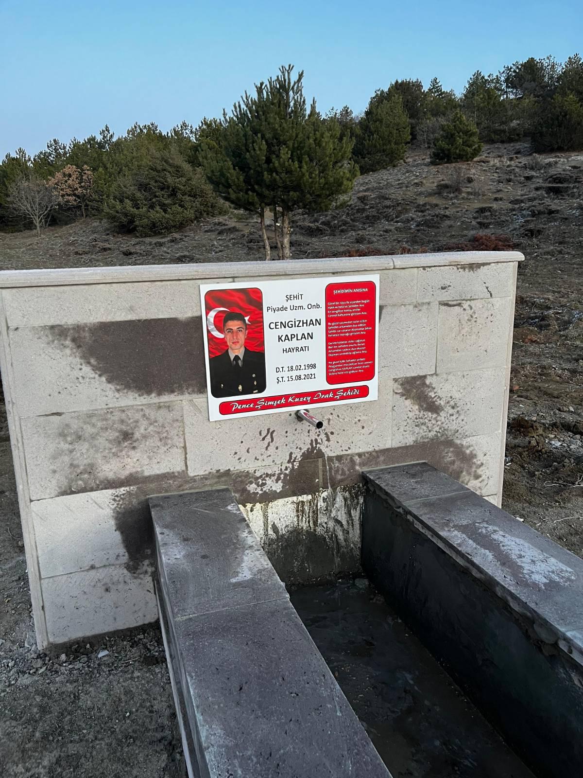 Pençe/Şimşek Harekât Bölgesi’nde şehit olan Cengizhan Kaplan adına ailesi tarafından Kırıkkale’nin Bahşılı ilçesine bağlı Çamlıca Köyü yayla bölgesinde yaptırılan çeşmeye, kimliği belirsiz kişilerce zarar verildi.