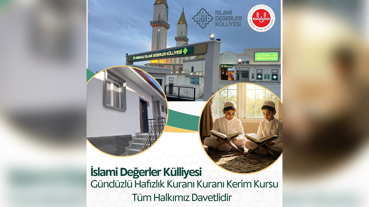 Kamu yararına dernek statüsüne sahip olan Kırıkkale İslami Değerler Külliyesi, şehrin manevi hayatına katkı sağlayacak yeni bir hizmeti daha hayata geçiriyor. Külliye, Gündüzlü Hafızlık ve Kur’an Okuma Kursunu açarak her yaştan katılımcıya Kur’an-ı Kerim’i öğrenme fırsatı sunacak.