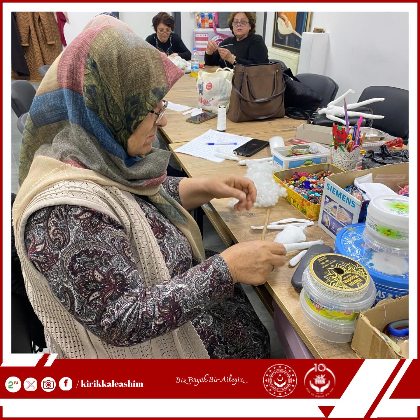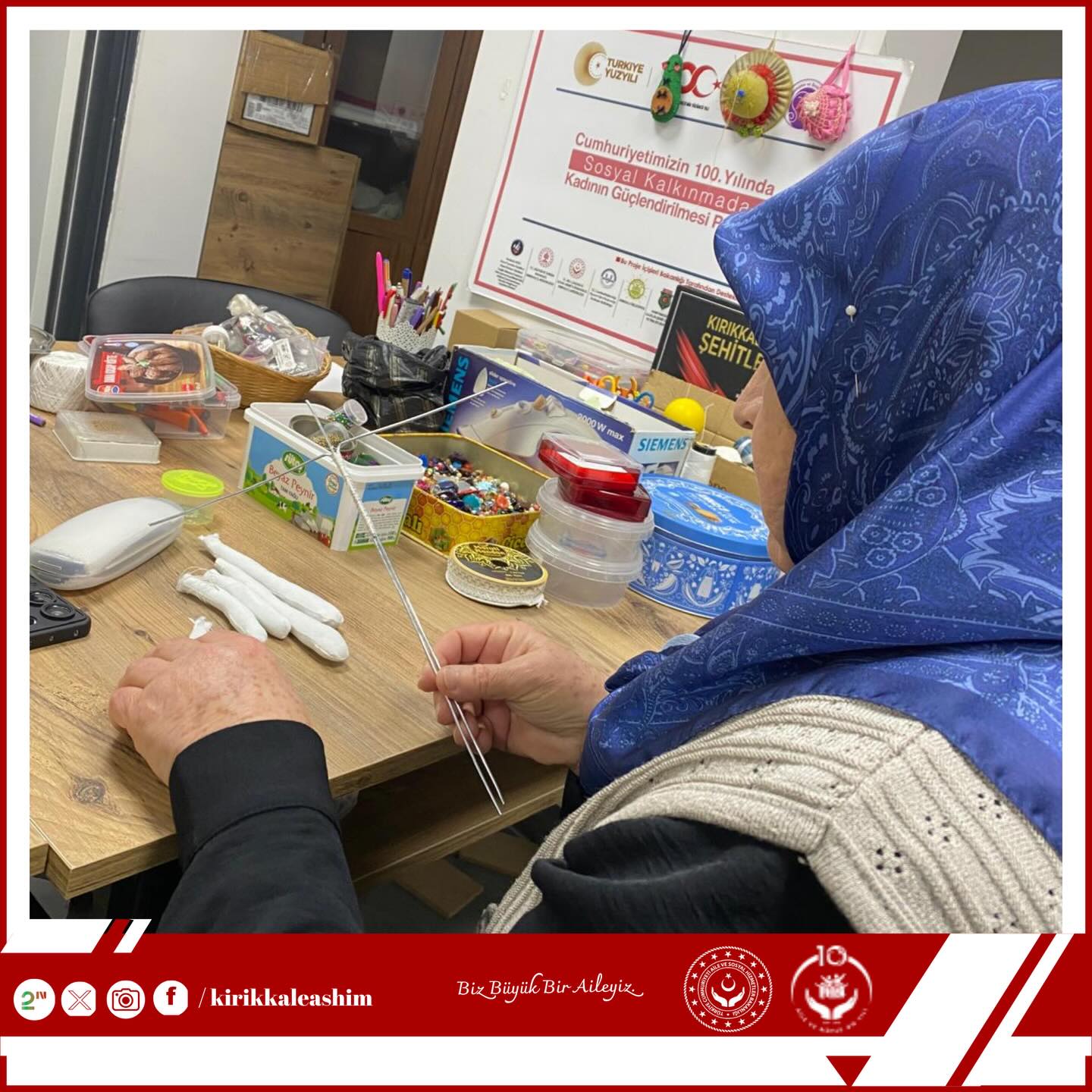 Aile ve Sosyal Hizmetler Bakanlığı Şehit Yakınları ve Gaziler Genel Müdürlüğü tarafından yürütülen “Sanata Teşvik ve Sanatla Yaşam Programı” kapsamında düzenlenen kurs çalışmaları aralıksız devam ediyor. Program, Kırıkkale Aile ve Sosyal Hizmetler İl Müdürlüğü koordinesinde yürütülüyor.