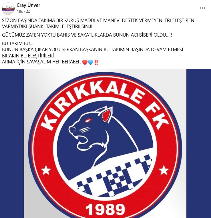 Açıklamasının sonunda taraftarlara seslenen Ünver, “Bırakalım eleştirileri, arma için hep birlikte savaşalım” çağrısında bulundu. Ünver’in bu açıklaması, Kırıkkale FK’nın yaşadığı zorlu süreçte camiada birlik ve beraberlik mesajı olarak değerlendirildi.