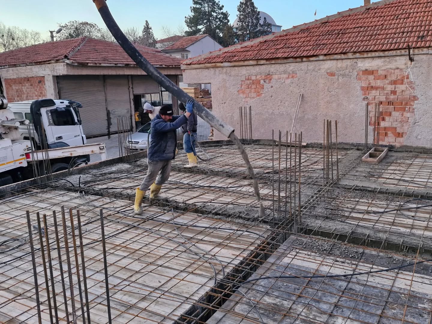 Kırıkkale’nin Sulakyurt ilçesinde yapımı devam eden Kur’an Kursu ve Hizmet Binası inşaatında çalışmalar aralıksız sürüyor. Yapının temel ve zemin kat taşıyıcı sistemini oluşturan demir donatı işlemlerinin tamamlanmasının ardından beton döküm aşamasına geçildi.