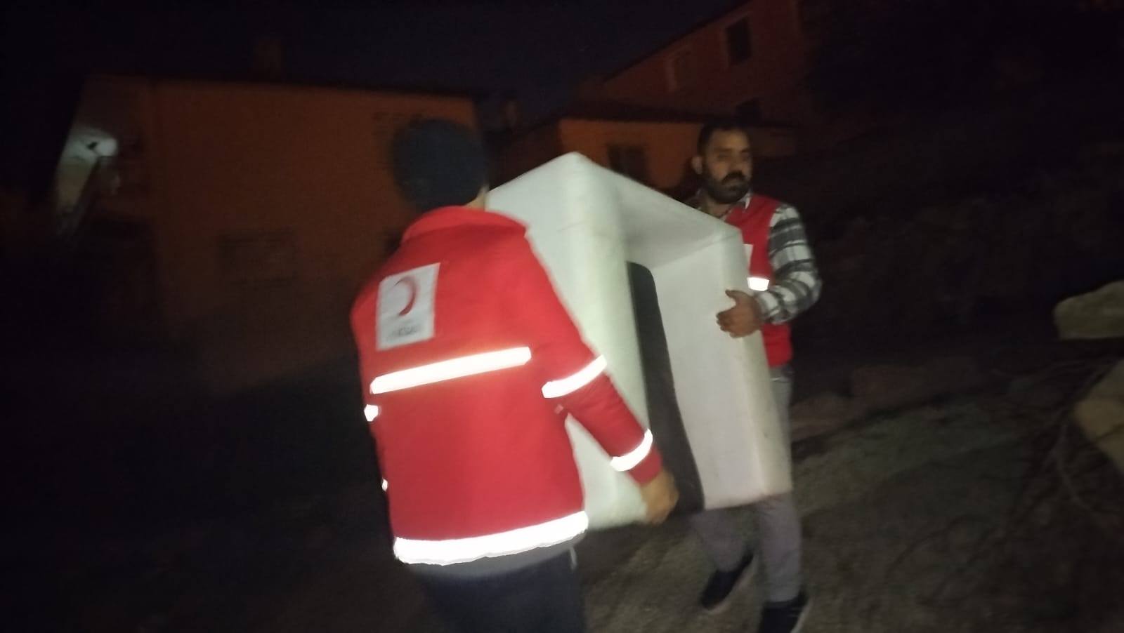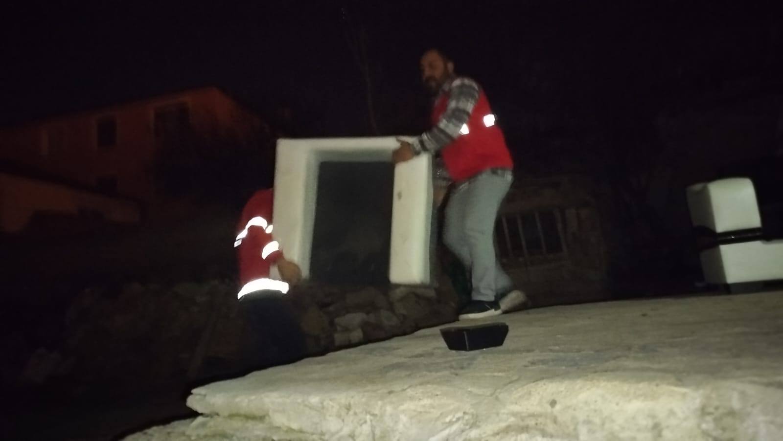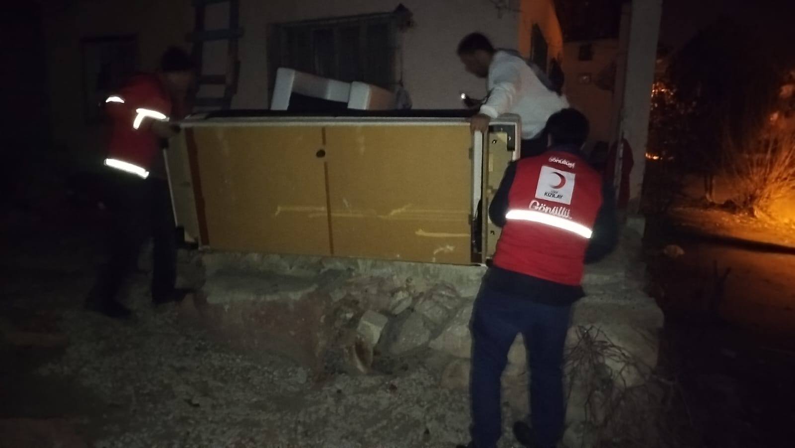 Yürütülen çalışmalar kapsamında, evinde temel eşyaları bulunmayan ihtiyaç sahiplerine de eşya yardımı yapılıyor. Soğuk hava, karanlık ve yoğun çalışma temposuna rağmen gönüllülerin özverili gayretiyle yardımlar devam ediyor.