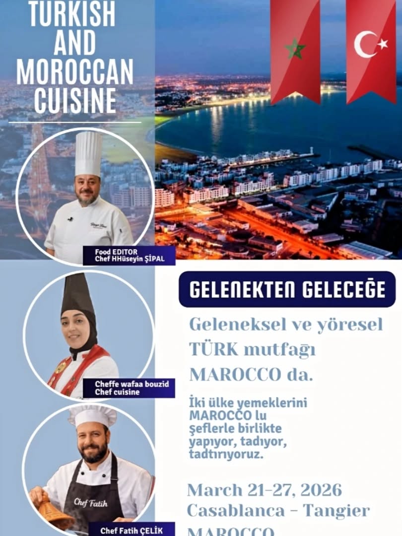 Türk mutfağının zengin mirasını uluslararası alanda tanıtmayı amaçlayan önemli bir proje kapsamında, Türk mutfağı Fas’a taşınıyor. Proje, ANPOŞEF Başkanı ve Food Editor, Kırıkkaleli hemşehrimiz Chef Hüseyin Şipal öncülüğünde hayata geçiriliyor.