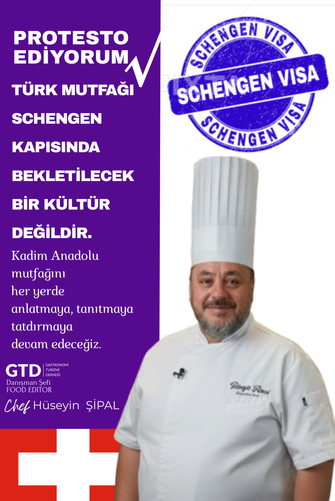 Türk mutfağının ve kadim Anadolu lezzetlerinin tanıtılması ve yaşatılması amacıyla ulusal ve uluslararası platformlarda yürütülen çalışmalarda yaşanan Schengen vizesi sorunlarına tepki gösterildi. Gastronomi Turizmi Derneği (GTD) Danışman Şefi, Food Editor ve ANPROŞEF Başkanı olan Hüseyin Şipal, yaşanan vize engellerinin kabul edilemez olduğunu ifade etti.