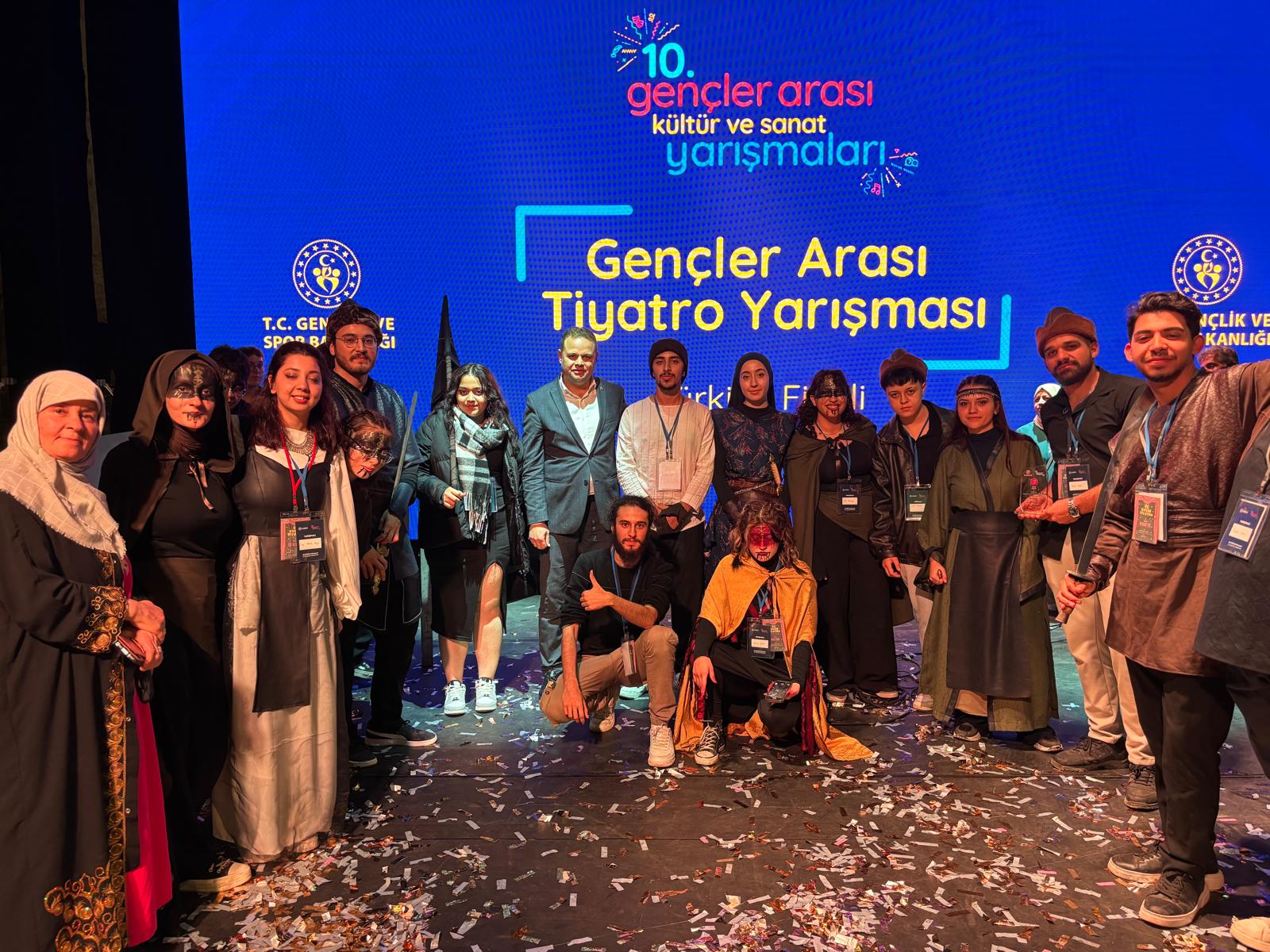 Göktürk Kitabelerinin yazılış hikayesini sahneye taşıyan Kırıkkaleli gençler, tarihi bir destanı sanata dönüştürerek izleyicilere duygusal anlar yaşattı. Oyunun sahne düzeni, anlatım dili ve güçlü oyunculuklarıyla jüri üyelerinden tam puan alan ekip, Türkiye birinciliğini kazandı.