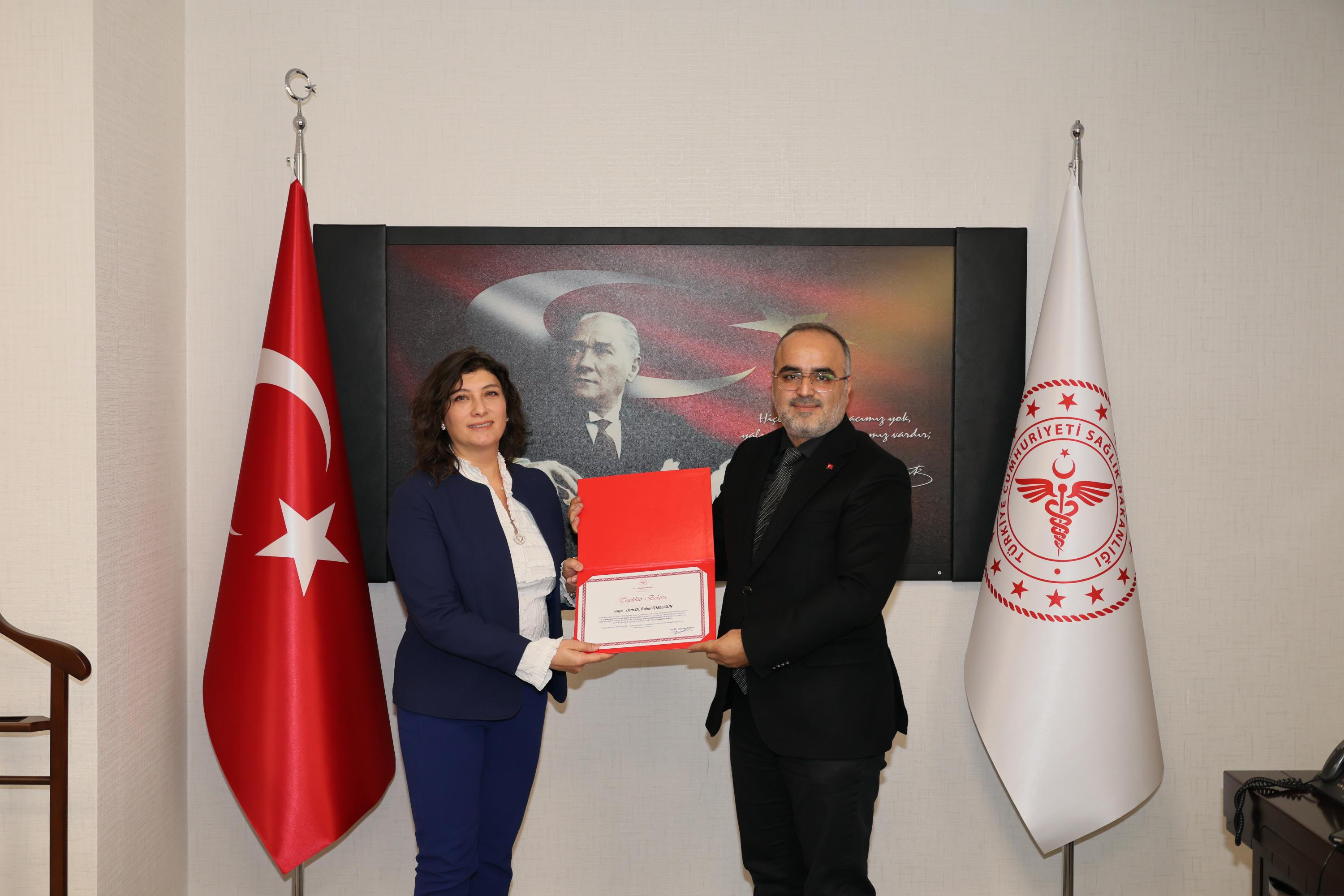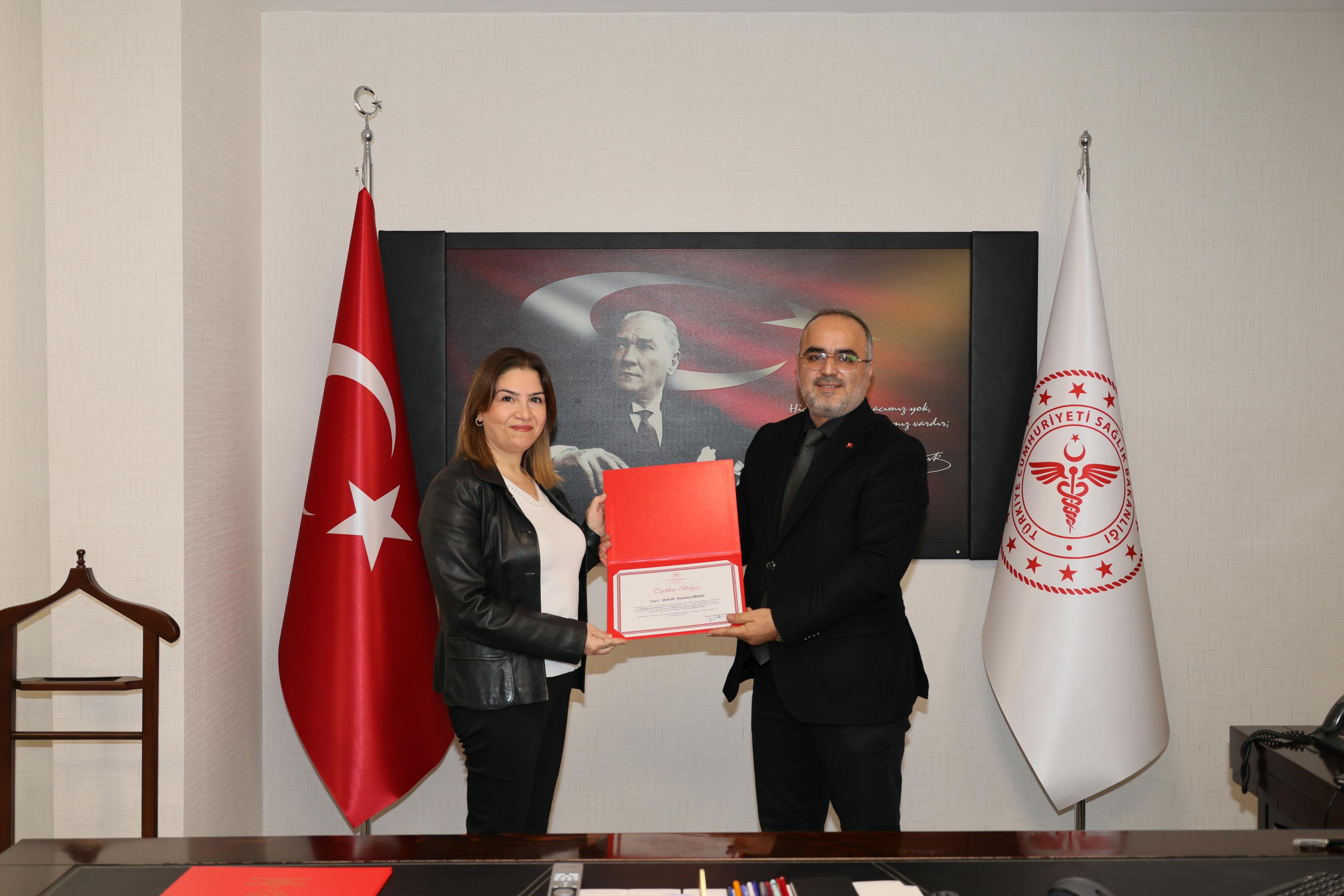 Toplantıya ayrıca Kamu Hastaneleri Hizmetleri Başkanı Dr. Hakan Kılıç da katıldı. Başarıda emeği bulunan Hastane Başhekimi Uzm. Dr. Hakan Varol, Uzm. Dr. Murat Taş, Uzm. Dr. Yasemin Pekuz ve Uzm. Dr. Bahar İçmeligün’e teşekkür belgeleri verildi.