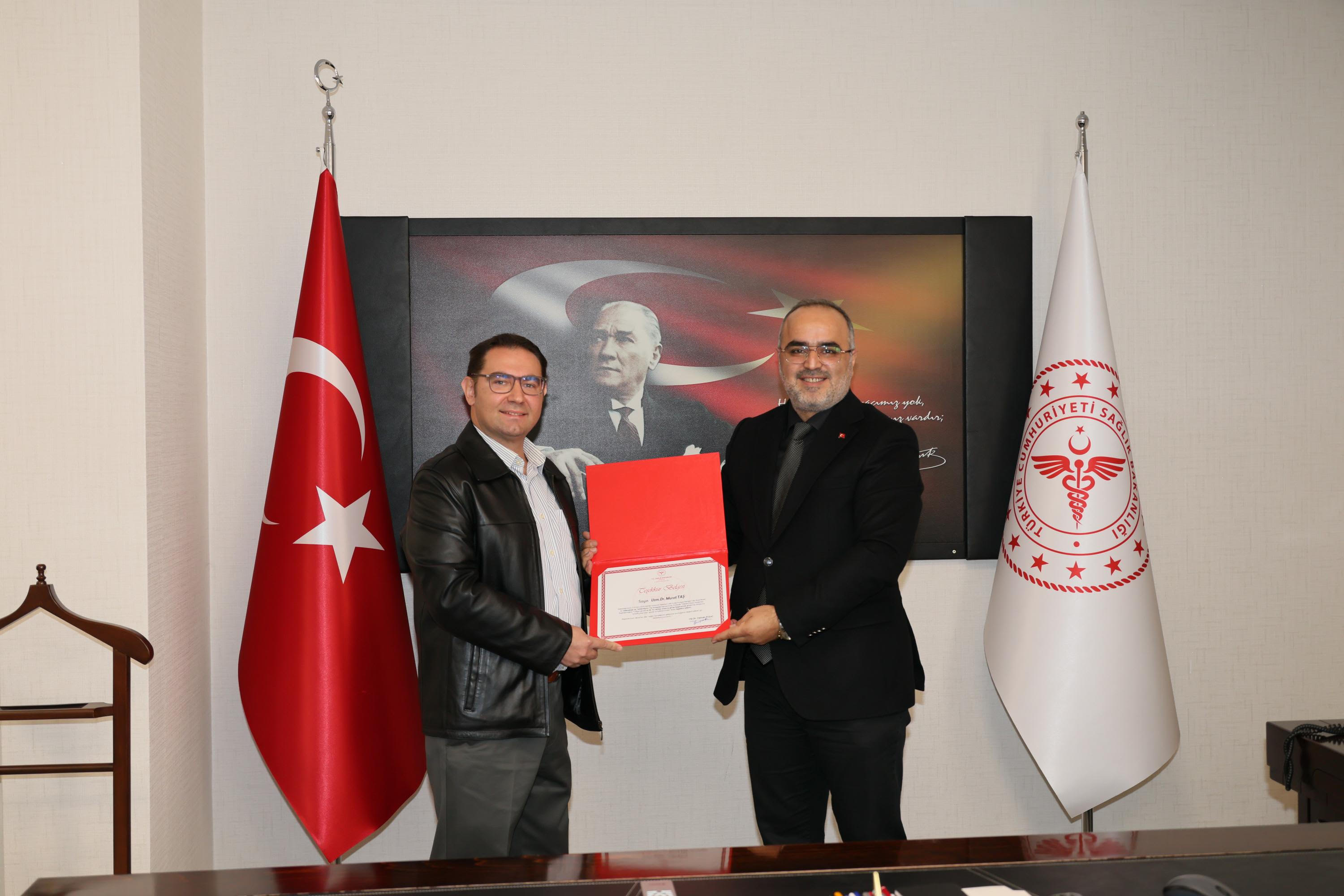 Kırıkkale İl Sağlık Müdürü Op. Dr. Osman Polat, Sağlık Bakanlığı tarafından düzenlenen 3. Geleneksel ve Tamamlayıcı Tıp Kongresi kapsamında, Kırıkkale Yüksek İhtisas Hastanesi’nin Türkiye genelinde ilk 10 merkez arasında yer alma başarısı dolayısıyla hastane idarecileri ve hekimlere teşekkür belgeleri takdim etti.
