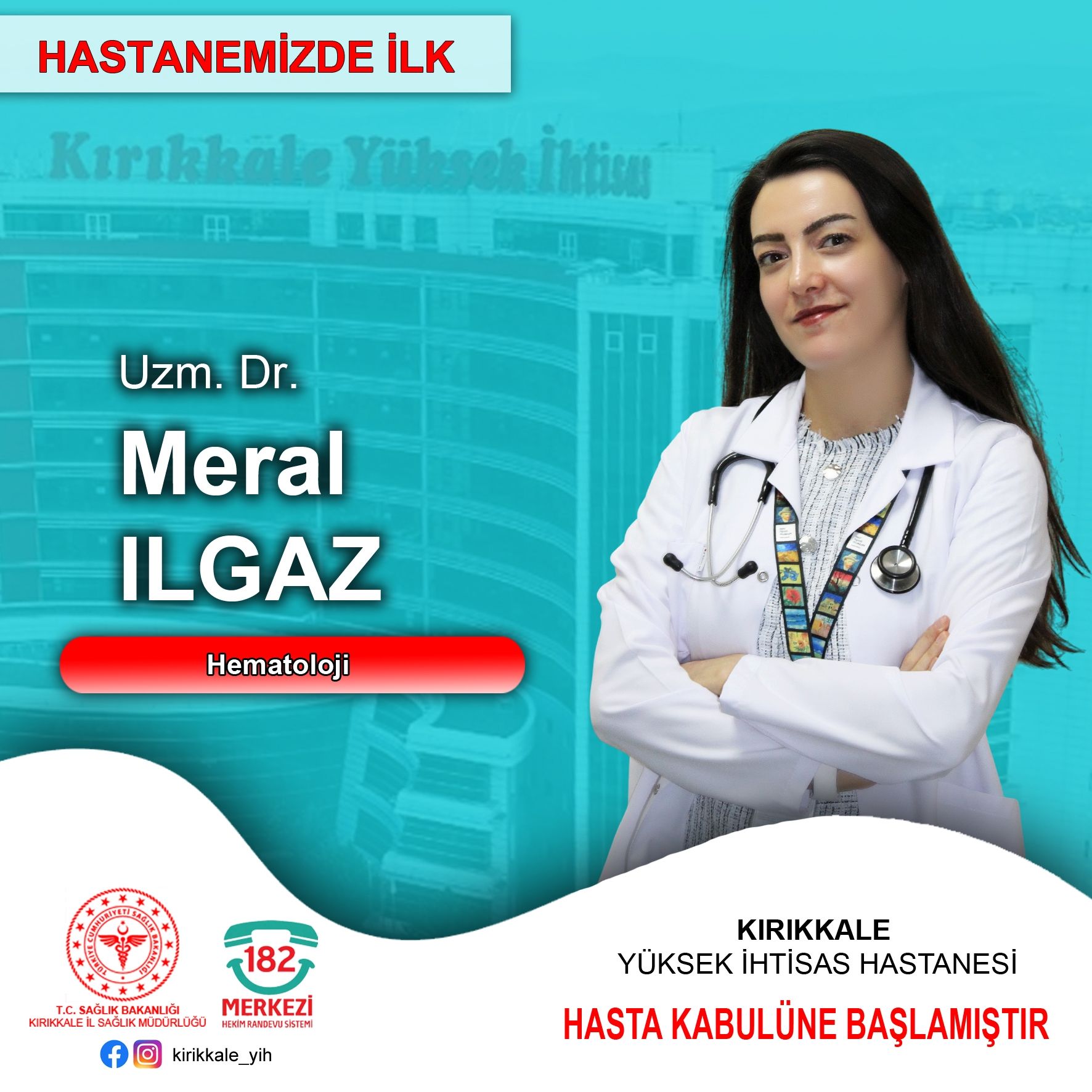 Kırıkkale Yüksek İhtisas Hastanesi bünyesinde ilk kez Hematoloji Polikliniği hizmet vermeye başladı. Yeni açılan poliklinikte, Uzman Doktor Meral Ilgaz hasta kabulüne başladı.